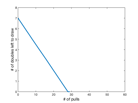 Here's how the average game goes. The number of double dominoes left drops at a constant rate.